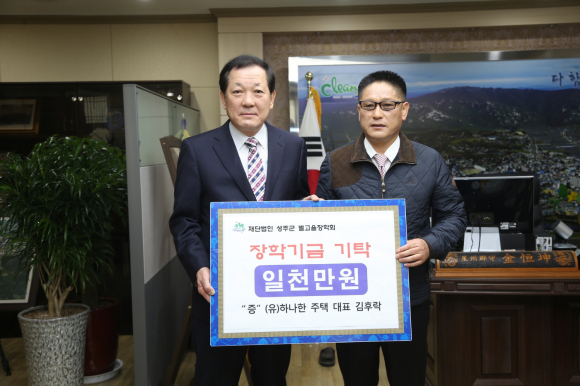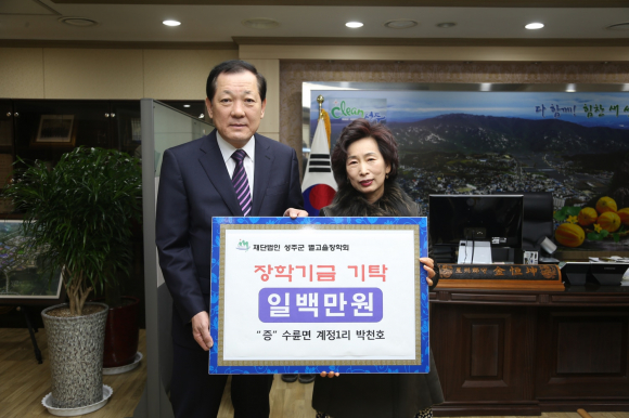(유)하나한주택 대표 김후락 10,000,000원, 상수도 급수공사 대행업체 5,000,000원, 육일부직포공업 대표 여권택 3,000,000원, 수륜면 친환경쌀 전업농회 1,000,000원, 수륜면 계정1리 박천호1,000,000원, 수륜면 봉양1리 강오용 1,000,000원, 안아롱(성주여고 48회 졸업)1,000,000원, 성주군 의회사무과장 박성삼 1,000,000원, 성주군의회 전문위원 여갑숙 1,000,000원, 대가면 산업담당 석상식 500,000원을 (재)성주군별고을 장학회에 기탁했다.