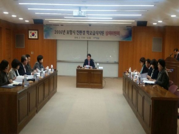 포항시가 17일 시청 소회실에서 교육지원청, 영양교사, 급식단체, 학부모대표, 농가대표 등이 참석한 가운데 ‘2016년 포항시 친환경 학교급식지원 심의위원회(위원장 이재춘 부시장)’를 개최했다.