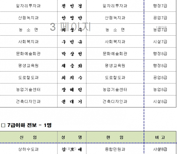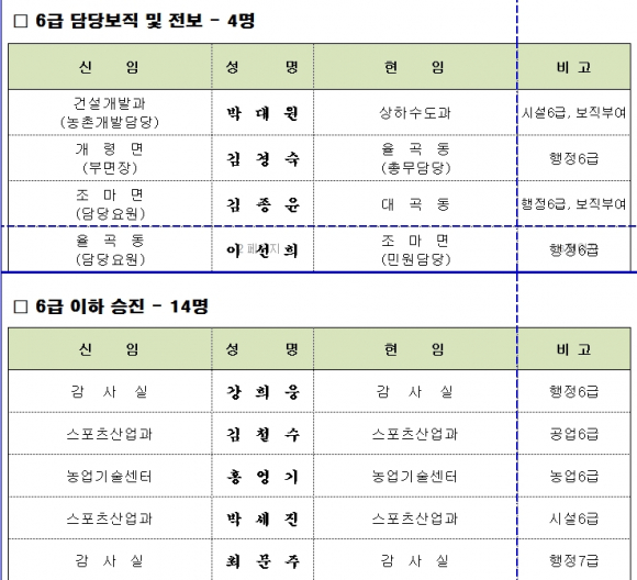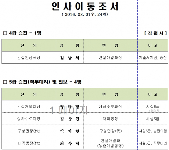 김천시, 수시인사 이동 조서