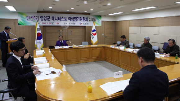 민선6기 영양군 매니페스토 이행평가 위원회 심의회가 2016년 2월 29일 월요일 11시 영양군청 소회의실에서 개최되었다.