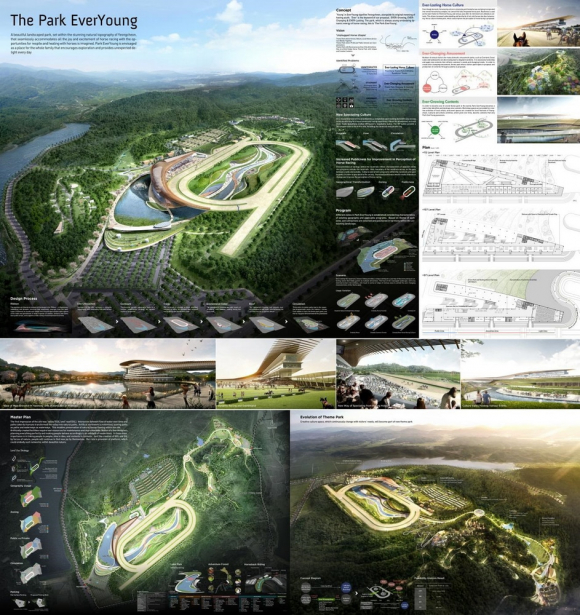 그 결과 최종 당선작에는 영국 Grimshaw Architects 등과 컨소시엄을 구성한 ㈜나우동인건축사사무소의 ‘The Park EverYoung(더 파크 에버영)'이 선정 되었다. 새로운 컨텐츠를 발굴하고 성장시키는 플랫폼으로서의 공원(Ever-Growing Contents), 교육과 놀이를 결합해 항상 변화를 선보이는 공원(Ever-Chaging Amusement), 경마를 뛰어넘어 말의 다양한 일생을 콘텐츠로 담은 말 문화 테마파크(Ever-Lasting Horse Culture)라는 세 가지 콘셉을 공간적으로 완벽히 잘 구현했다는 평가를 받았다.