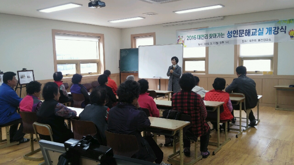 영양군 입암면(면장 김영범)은 7일 입암면 대천리 보건진료소에서 대천리 마을주민 20명을 대상으로 2016 찾아가는 성인문해 교실 개강식을 가졌다.
