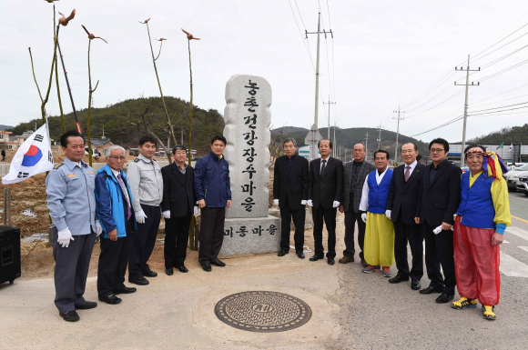 이를 기념하기 위해 마을 입구에 장수마을 표지석을 세우며 열린 이날 제막식에는 이희진 군수를 비롯한 지역기관단체장, 지역민들이 참석한 가운데 김용웅 이장의 인사와 사업경과보고를 시작으로 군수 축사ㆍ제막행사ㆍ기념촬영 순으로 진행됐으며, 마을 풍물패가 농악놀이로 더욱 흥을 더했다.