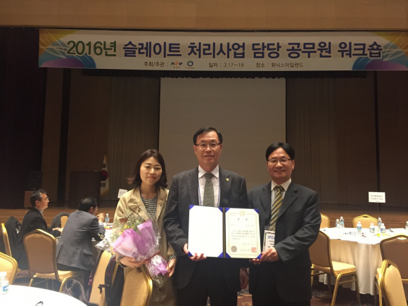 시상식은 환경부, 지자체 공무원 및 한국환경공단 담당자 등 350여 명이 모인 가운데 제주도 휘닉스아일랜드에서 3월 17일과 18일 양일간 열린 환경부 주최로 열린 ‘2016년 슬레이트 처리사업 워크숍’에서 거행되었다.