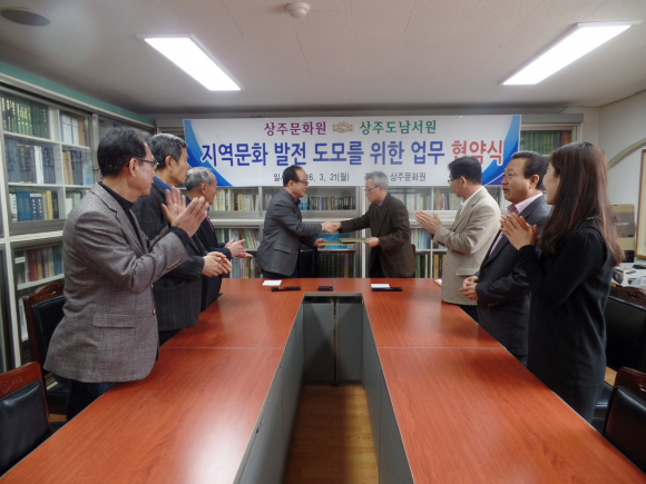 주요내용은 지역문화 발전을 도모하기 위해 상주문화원과 도남서원이 향후 3년간 공동으로 향토사적 인물의 학술발표회를 개최하는 것으로 필요한 경비는 도남서원이 출연한다.