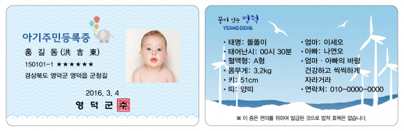 영덕군, 출생기념 아기 주민등록증 발급 시행
