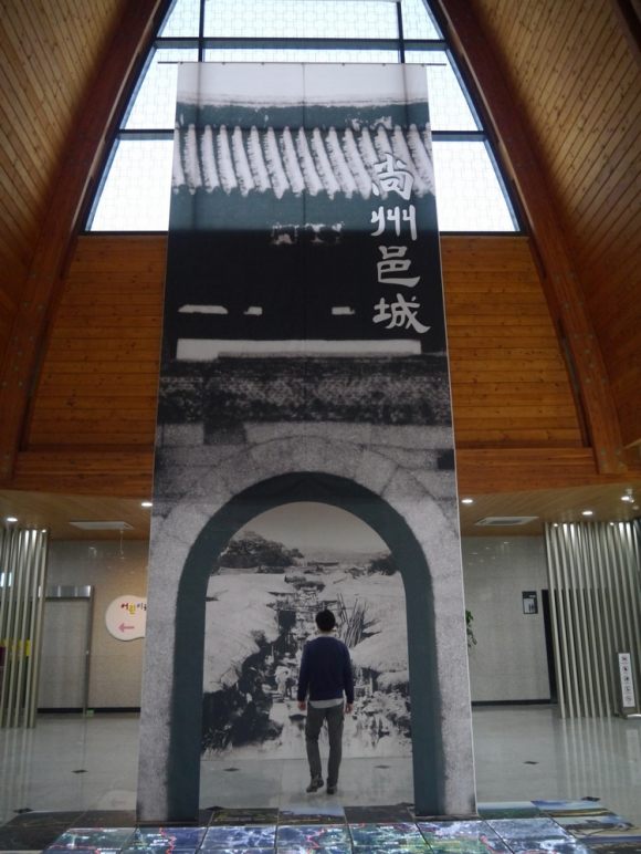 이번 전시는 기획전시실은 물론 로비에까지 확대했다. 로비에는 상주읍성 남문사진과 시가지 전경을 실제크기로 전시하면서 마치 성문을 통해 시가지로 진입하는 것처럼 연출했다.