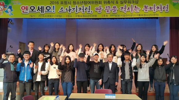 “청소년이 행복한 세상! 청소년이 꿈꾸는 밝은 미래”를 앞장서 열어나가는 포항시청소년참여위원회가 2016년도 신규위원을 선발, 지난 4월 9일 구룡포청소년에서 열린 위촉식에서 포항시청소년참여위원회 제12기 위원을 위촉했다.