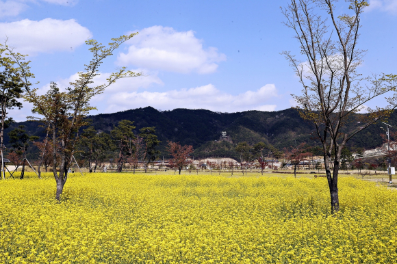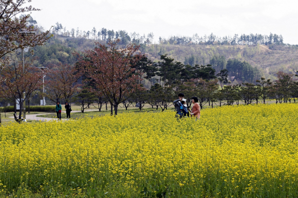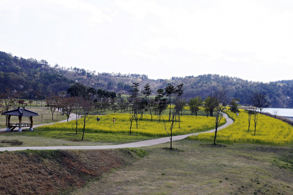 상주시 경천섬 유채꽃 만발 이번주 절정, 봄을 만끽하세요