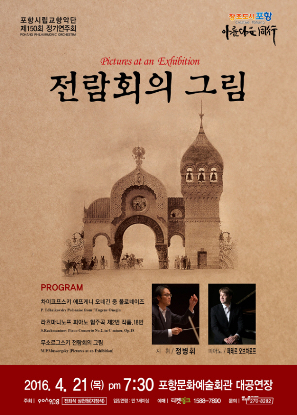 포항시립교향악단(단장 이재춘)은 4월 21일(목) 오후 7시 30분 포항문화예술회관에서 포항시립교향악단 제150회 정기연주회 ‘전람회의 그림’을 공연한다.