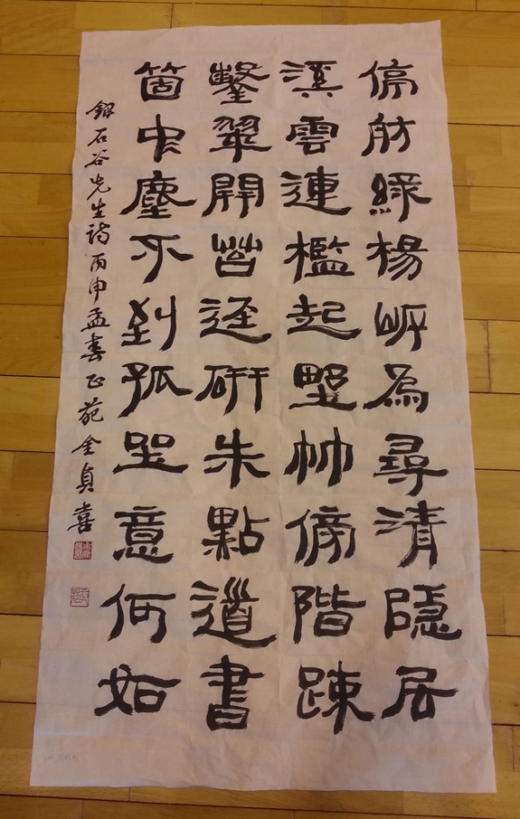 심사결과 대상작품으로 선정한 김정희씨의 작품 ‘석곡선생詩’는 죽간체로 활달한 운필과 필력으로 먹색과 조형미가 뛰어난 수작으로 심사위원 전원 만장일치로 선정됐다.