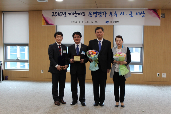 이번 평가는 경북 23개 시군을 대상으로 국민과 공무원 제안, 특수시책 등 8개 항목을 1차 서면심사와 2차 현지확인 절차를 거쳐 경북도에서 최종 선정하였다.