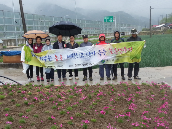 김천혁신도시로 이전한 국립종자원(원장 오병석)이 김천시 지례면 교2리 온평마을 진입로에서 함께 가꾸는 농촌운동의 일환으로 마을가꾸기 사업을 실시하였다.