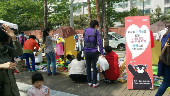 포항시다문화가족지원센터 일본 자조모임은 지난달 30일 우창동 폐철도 도시숲에서 열린 ‘임신·육아 용품 알뜰 나눔 한마당’ 바자회에서 얻어진 수익금을 지난달 14일에 발생한 일본 구마모토현 강진 피해 성금으로 기탁하기로 했다.