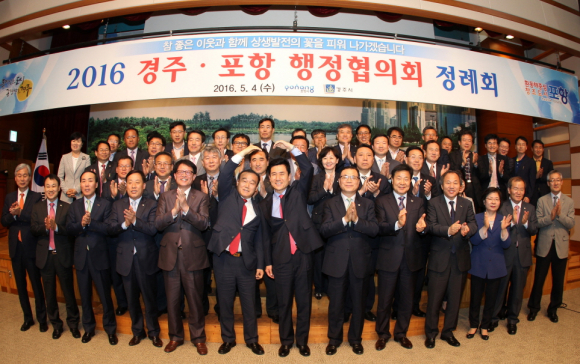 포항시와 경주시가 역사·문화·경제공동체로서 상생발전을 위한 「2016 포항․경주 행정협의회 정례회」를 개최하고 지속적인 협력 행보를 이어갔다.