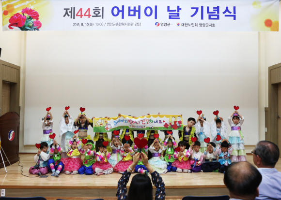 영양군(군수 권영택)에서는 어버이날을 맞이하여 어버이은혜에 감사하고 전통 미풍양속인 경로효친 사상을 계승 발전시키기 위한 『제44회 어버이 날』기념식을 기관단체장 및 유공 수상자, 주민 등 200여명이 참석한 가운데 5월 10일(화)영양군 종합복지회관에서 개최하였다.