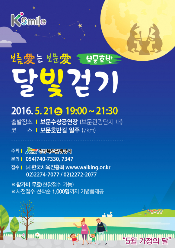 장미가 붉게 피어나는 계절의 여왕 5월, 경상북도관광공사(사장 김대유)는 오는 21일(토) 보름날이자 부부의 날에 "보름愛는 보문愛"보문호반 달빛걷기 행사를 보문호반길 일원에서 개최한다.