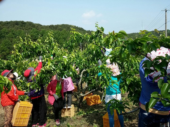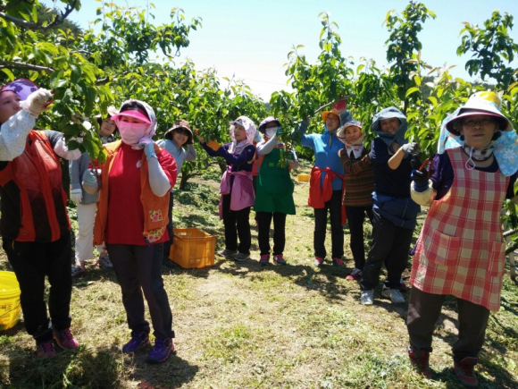 생활개선포항시연합회 중부회(회장 정영희) 회원 30여명은 17일 북구 장량동 이원배 농가의 배나무 밭에서 과수 열매솎기 등 농촌일손돕기에 나섰다.