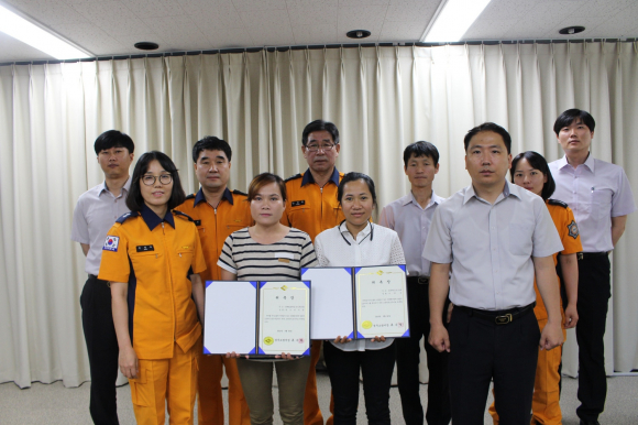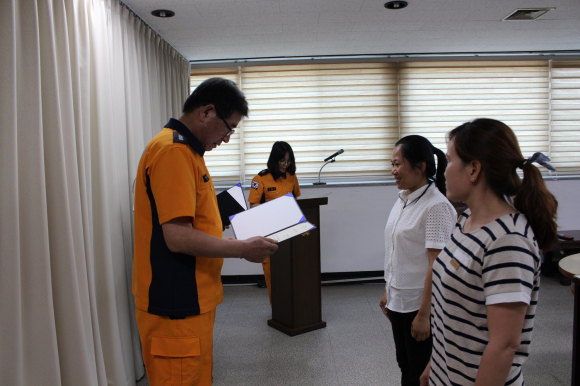 이날 소방안전도우미로 다문화가족지원센터 관리회원 중 한국어 능력이 뛰어나고 매사 적극적이고 타의 모범이 되는 이예승(베트남), 폰네리(캄보디아) 씨를 위촉하였다.