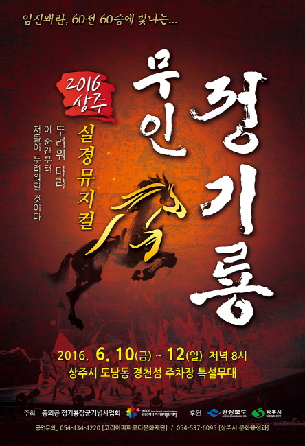 한편, 상주실경뮤지컬 ‘무인 정기룡’은 상주시 도남동 경천섬 주차장 특설무대(도남동 168-2)에서 오는 6월 10일(금)부터 6월 12일(일)까지 3일 동안 오후 8시부터 90분간 무료로 공연된다. |