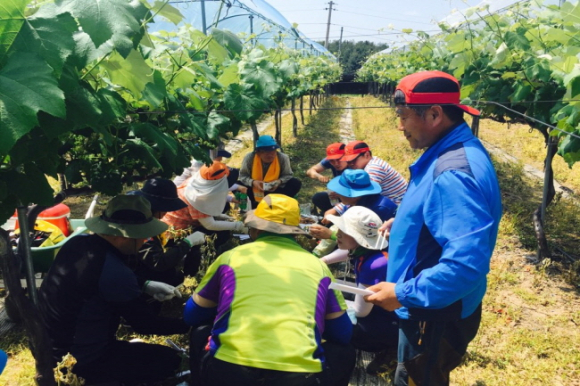 상주시 내서면과 보건소 직원, 강풍 피해 농가 포도 곁순따기 지원