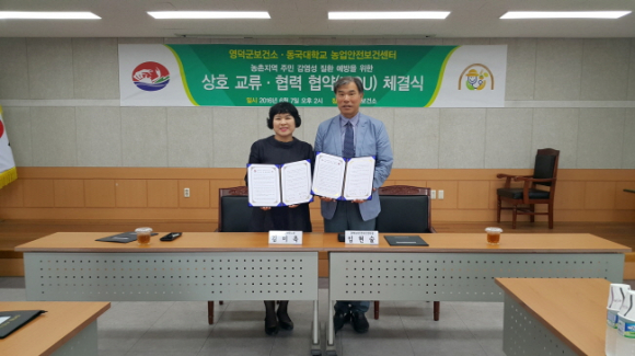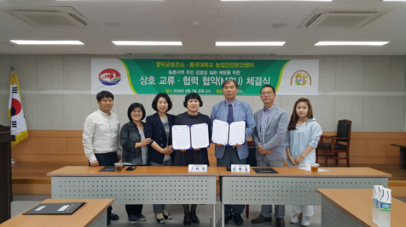 경북농업안전보건센터(센터장 임현술)와 영덕군보건소(소장 김미옥)는 7일 영덕군보건소 3층 회의실에서 농촌지역 주민 안전보건 및 감염성 질환의 효과적인 예방 교육 및 홍보를 통해 농업인의 삶의 질 향상을 위한 상호교류· 협력 협약(MOU)을 체결했다.