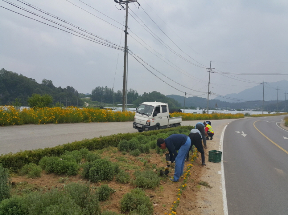 공공근로 그들의 땀방울로 금계국 꽃피우다