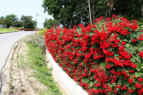 예천군에서 전국 최초로 운영하고 있는 순환형매립장에는 장미와 송엽국이 활짝 펴 근처를 지나는 주민들의 발길을 붙잡고 있다.