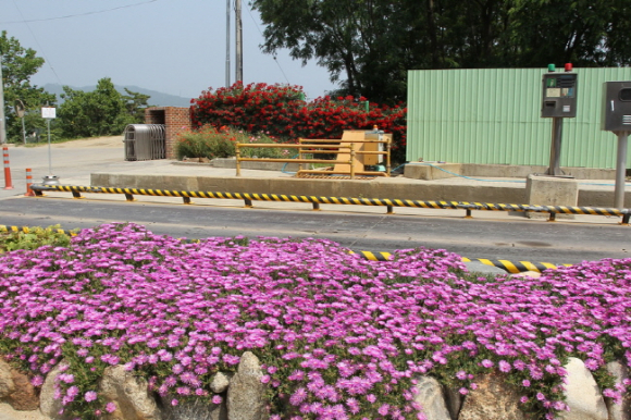 출입통제를 위한 휀스를 빙 둘러 심어진 장미와 중간 중간 화단을 만들어 활짝 핀 연산홍, 패랭이는 분홍 물을 가득들인 꽃 정원으로 탈바꿈해 매립장을 찾아 이를 본 주민들이 아름다운 모습에 탄성을 자아내고 있다. 또한, 매립장 사면을 덮은 송엽국은 남아프리가가 원산이며 당초1,000포트를 식재하고 이를 다시 꺾꽂이 해 현재의 장관을 볼 수 있게 되었으며 장미는 500주를 식재해 매립장에 근무하는 직원들의 정성으로 한 폭의 그림 같은 꽃밭이 탄생됐다.