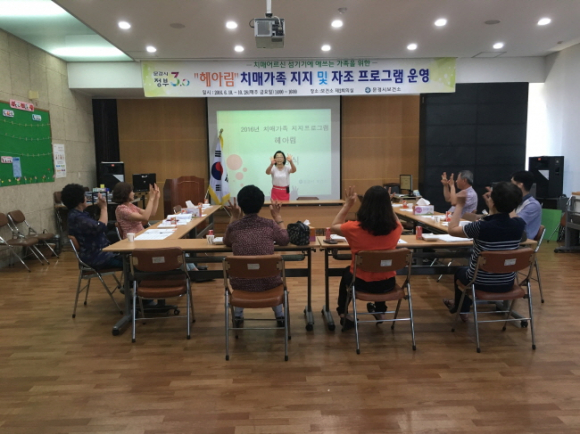 또한 자조모임을 통해서는 치매환자를 돌보는 가족 또는 보호자들이 모여 실제적인 경험이나 감정을 나누면서 서로를 지지하고 위로받는 시간으로 구성되며,이 날 프로그램에 참여한 김모 할머니는“남편이 치매를 앓은 지2년 남짓 되었고 평소 너무 우울해하고 누워만 있어서 어떻게 해줘야할지 막막했는데 오늘 치매교육도 해주고 나도 위로를 받으니 마음이 후련하니더..”하셨다.