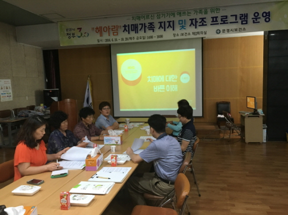 문경시(보건소)는2016년6월10일(금) 14:00보건소 제2회의실에서 치매환자 가족15명이 참석한 가운데「헤아림」을 주제로 한 가족지지프로그램 개강식을 가졌다.