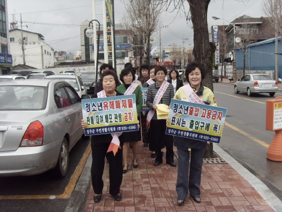성주군 여성단체협의회(회장 김분남)은 청소년선도 및 유해환경 철폐를 위한 캠페인 및 청소년유해매체물(음반, 비디오 등) 판매업소, 청소년유해약물(술,담배,환각물질 등) 판매업소 지도에 앞장섰다.