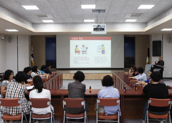이날 교육은 관내 소규모 사회복지시설 및 유치원, 어린이집 등 관련시설의 운영자 및 조리사 등을 대상으로 식품의 안전취급요령과 개인 위생관리 및 조리장 등의 급식환경위생관리 등에 대해 전반적인 내용을 사례화 한 실무위주 교육으로 진행하여 교육 참석자들로부터 식중독예방에 많은 도움이 된 교육이라는 평가를 받았다.