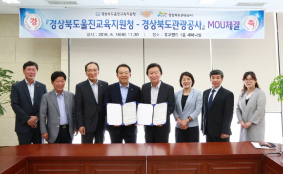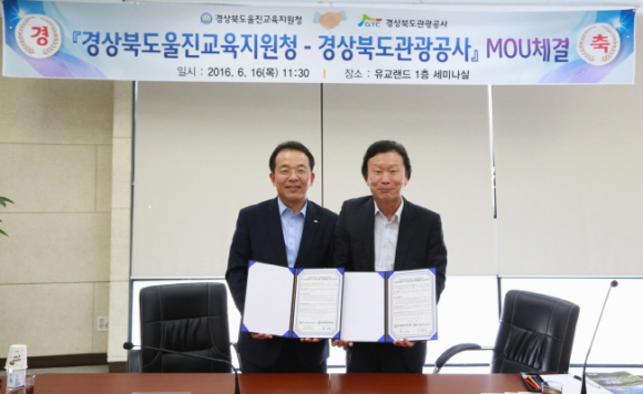 경상북도관광공사(사장 김대유)는 울진교육지원청(교육장 임경)과 16일 안동문화관광단지내 유교랜드에서 학생 인성함양 및 각종 정보의 상호교류를 위한 업무협약을 체결했다.