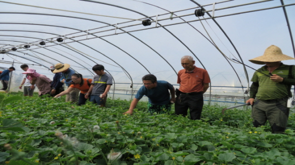 성주군(군수 김항곤)은 참외 강소농의 기술경쟁력을 높이기 위하여 참외농가 20명을 대상으로 현장체험 위주 교육을 6월 16일 실시했다.