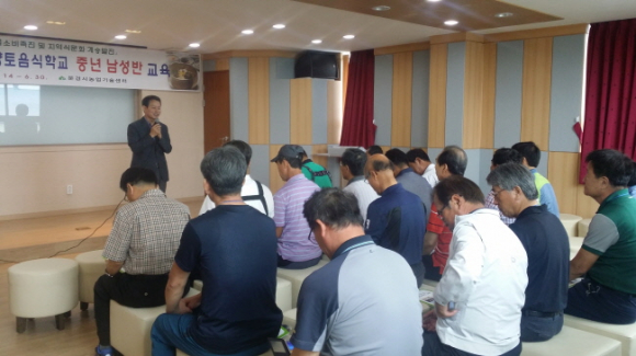 중년남성반은 잊혀지고 사라져가는 문경 향토식문화의 체계적 보전과 전수,문경농특산물을 활용한 향토음식체험으로 농특산물 소비 촉진,지역농업농촌및 지역식문화에 대한 전문교육으로 건강한 녹색식생활 실천 요령 습득을위해 문경시민을 대상으로6회 과정(6. 14 ~ 6. 30매주 화․목)으로운영했다.