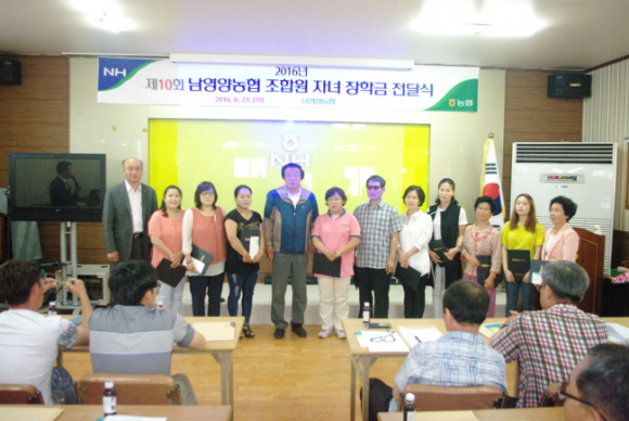 남영양농협(조합장 박명술)에서는 06월 23일 노지채소(건고추)계약 설명 및 불량식품 뿌리 뽑기 교육에 앞서 제 10회 조합원 자녀 장학금 전달식을 가졌다.