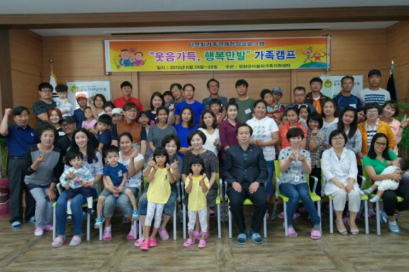 봉화군 다문화가족지원센터(센터장 박시원)는 6.24(금)∼6.25(토)까지 1박2일 동안 관내 다문화가족 70여명을 대상으로 상운면 한누리전원생활센터에서 『웃음가득, 행복만발』이라는 슬로건으로 다문화가족 캠프를 실시한다.