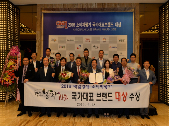 ‘백두대간의 중심 파인토피아 봉화사과'가 지난 28일 밀레니엄 서울 힐튼호텔에서 열린 '2016 소비자평가 국가대표 브랜드 대상(Consumer Evaluation National-Class Brand Awards)' 시상식에서 농특산공동브랜드 사과 부문 '대상'을 수상했다.