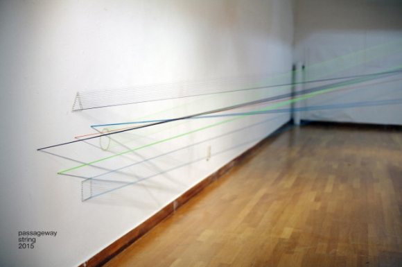 광주비엔날레 특별전 등을 통해 독특한 감흥을 자아내는 라인(line) 작업을 선보여 온 조용준 작가는 경주 전시에서도 전시장 전체를 가로지르는 ‘줄의 공간’을 선보인다. ‘스트링 공간 설치작업’인 이번 작품은 전시장 전체를 전방위로 가로지르는 색색의 튼튼한 실을 설치하고, 부스와 부스 사이에 연결통로를 만들기도 하고 천정에서 바닥으로 어려 빛깔의 색실을 드리워 산란하는 빛의 파장을 연상하도록 연출한다. 색실의 향연을 체감할 수 있는 흥미로운 전시이다.
