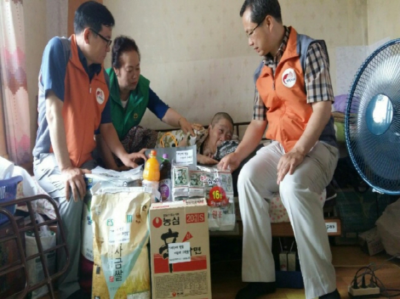 사랑의 쌀, 라면, 세제, 화장지, 통조림등 선물세트 전달