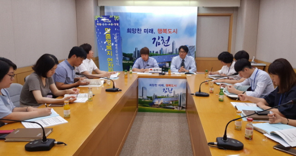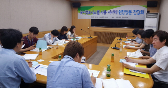 김천시(시장 박보생)는 2016. 6. 28(화) 시청 영상회의실에서 복지정보시스템 구축을 위한 의견수렴을 위하여 현장 방문한 사회보장정보원 오현범 차장 외 1명과 행복나눔과, 사회복지과, 건축디자인과 복지전산 운영 직원 15명이 한자리에 모여 복지전산시스템 개선을 위한 간담회를 가졌다.