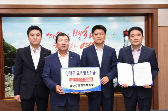 영덕군은 지난 6월 29일 강구수산업협동조합(조합장 강신국, 이하 강구수협)에서 (재)영덕군교육발전위원회(이사장 이희진, 이하 (재)영교위)를 방문해 지역의 교육발전과 인재육성사업을 위해 교육발전기금 500만원을 기탁했다고 밝혔다.