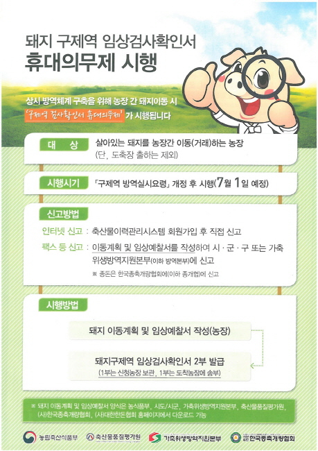 돼지 구제역 임상검사확인서 휴대의무제 7월 1일부터 전격 시행
