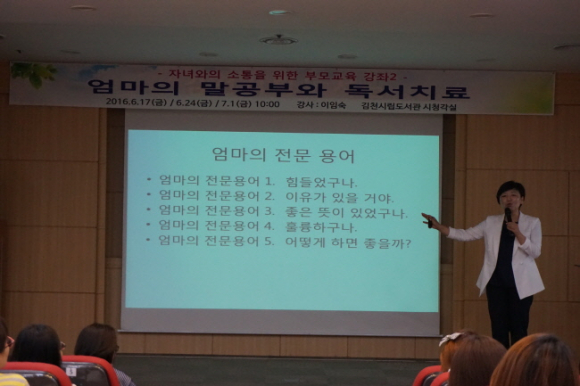 김천시립도서관(관장 나혜란)에서 지난 6월 17일부터 7월 1일까지 3회에 걸쳐 진행한 <제2기 자녀와의 소통을 위한 부모교육 강좌>에 100여명의 부모들이 함께하며 공감과 소통의 시간을 가졌다.