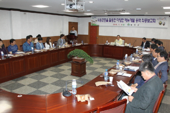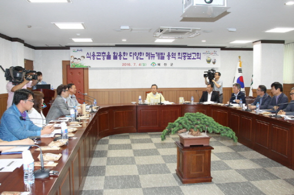 예천군에서는 4일 오전 11시 군청영상회의실에서 이현준 군수를 비롯한 업무관계자와 곤충사육농가 30여명이 참석한 가운데 식용곤충을 활용한 다양한 메뉴개발 용역 최종보고회를 개최 했다.