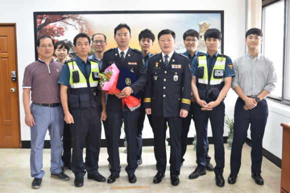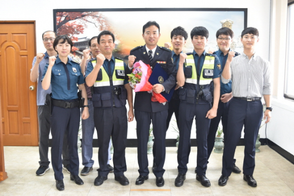 정흥남 경찰서장은 “시민들의 안전을 최우선으로 생각하며 경찰의 업무에 최선을 다한 두 분이 자랑스럽다.”며 특진을 축하한다. |