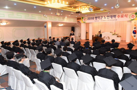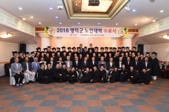 영덕군(군수 이희진)은 7월 8일 오전11시 영덕향교 예식장에서 대한노인회 영덕군지회 주관으로 2016 영덕군 노인대학 수료식을 가졌다. 수료식은 영덕두레놀이공연단의 민요공연으로 시작하여 내빈소개, 국민의례, 노인강령 낭독, 표창장 수여(조상호, 정정숙, 김수계, 김동숙 어르신), 수료증 수여(총 90명 - 강구학교 45명, 영해학교 45명), 인사말, 기념촬영 순으로 진행되었다.