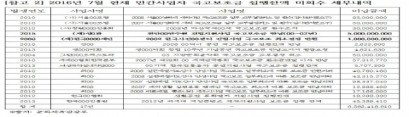 특히 민간사업자에 대한 국고보조금 집행잔액 미회수 세부내역을 보면, 10년 넘게 국고보조금이 반납 안 된 것을 비롯해 개인이 5건, 2억 1,250여 만원의 국고를 반납하지 않은 것으로 나타났다.