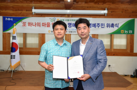 이희진 군수는 농협 서울지역 본부장 최옥씨에게 명예이장 위촉장을 수여하고 창수면 인량리 박윤식 이장은 농협 서울지역 본부 직원인 고정민, 유민아씨를 명예주민으로 위촉하였다.